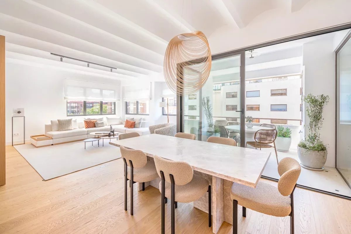 The wraparound terrace surrounds the entire apartment, ensuring that all rooms are exterior. This unique feature brings abundant natural light, spaciousness, and privacy, creating a constant connection between the interior spaces and the terrace—something rarely found in Madrid.